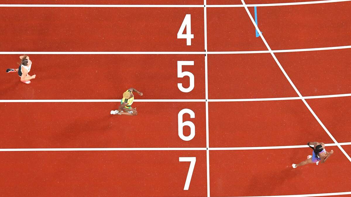 During the women's 200m semifinal only three runner's could qualify, so you would think you'd give it 100 percent the whole race. Apparently, Jamaica's Shericka Jackson didn't get the memo. For some INSANE reason she starts to jog at the end of the race! That jogging cost her a spot in the final because she came in fourth! She missed out on the final by four one thousandths of a second!!!!